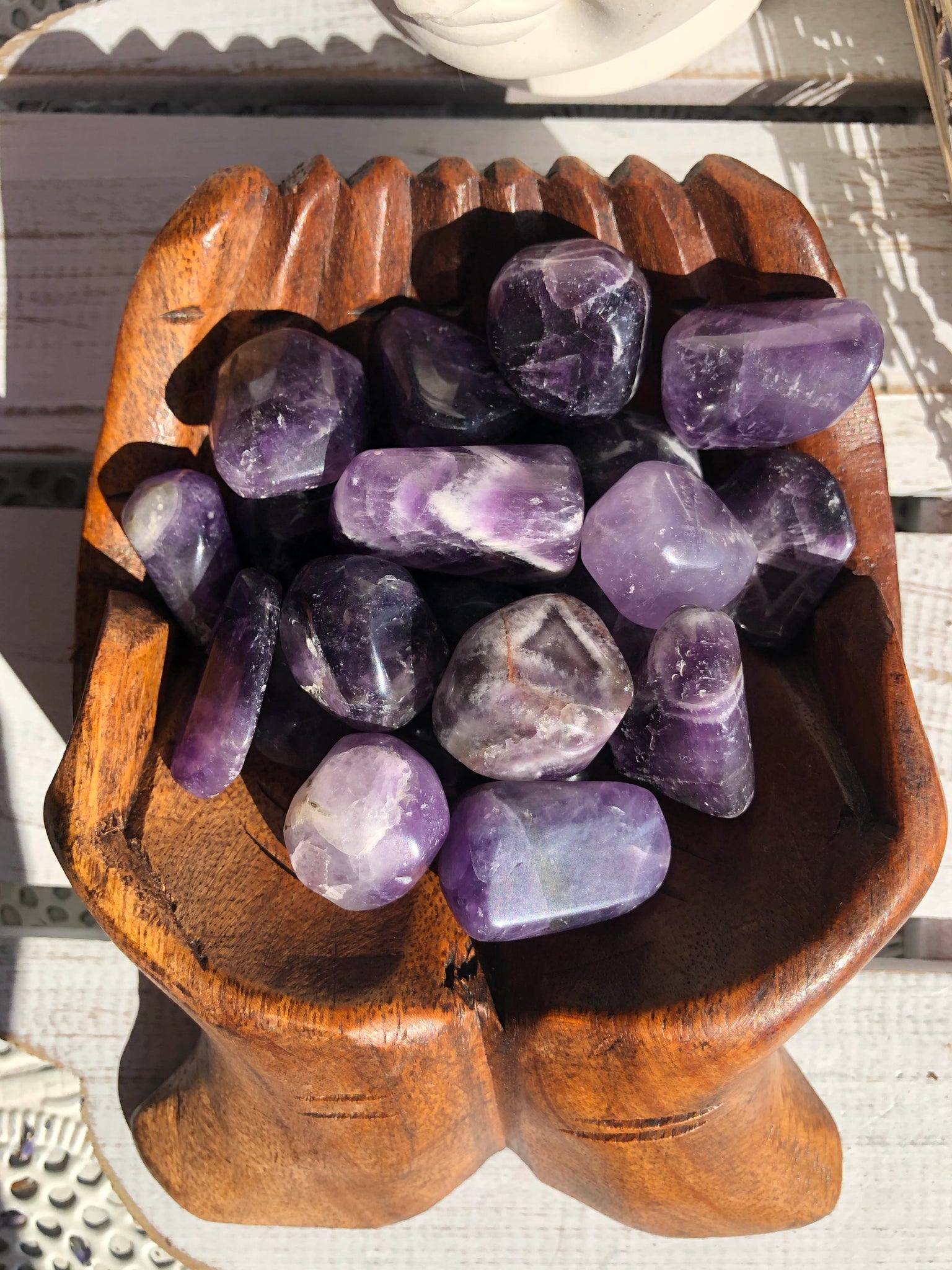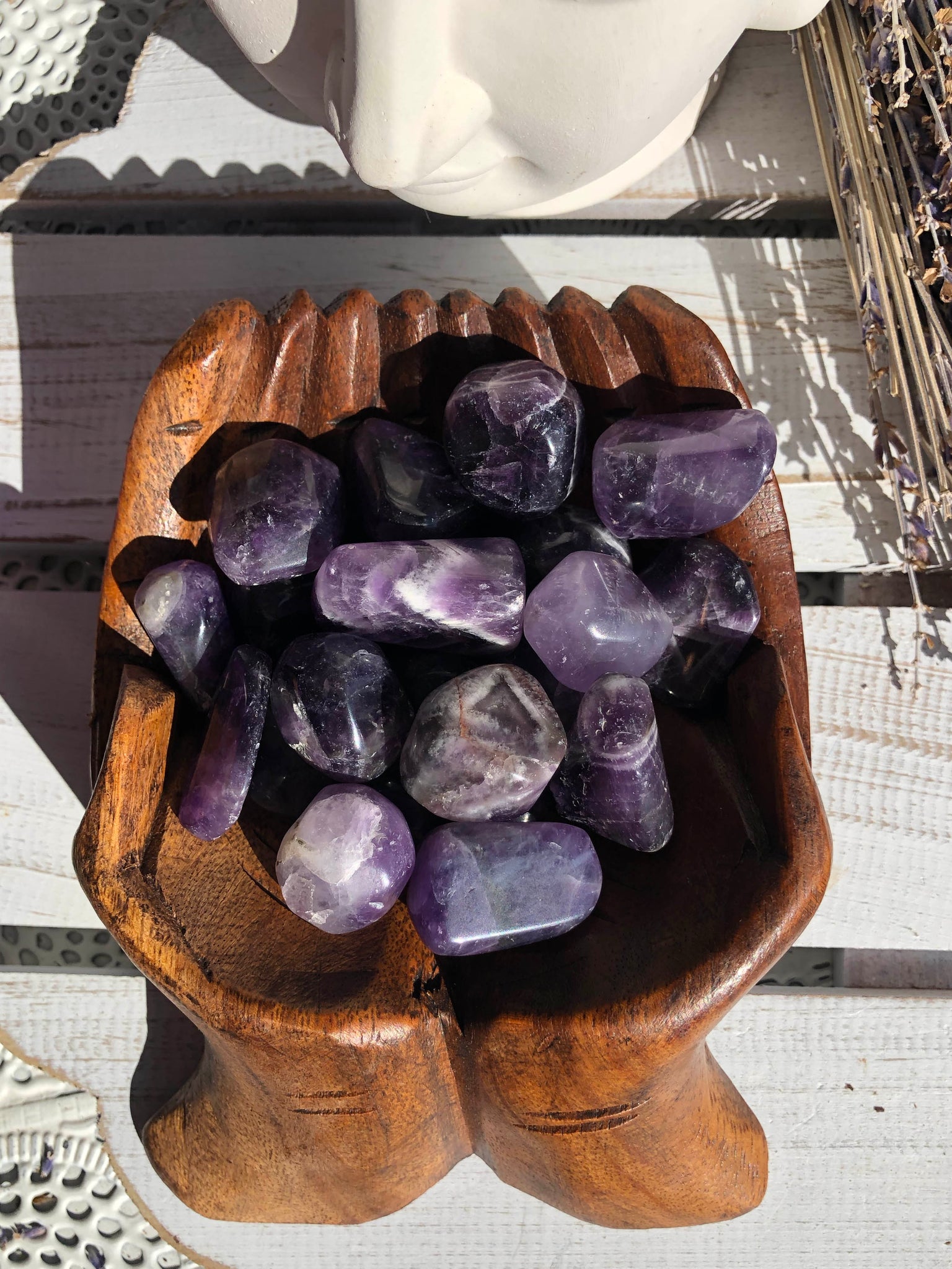 Amethyst has strong healing and cleansing powers. Helps to overcome addictions and blockages of all kinds. Aids sleep. Dispels all negative emotions and brings positive responses. Amethyst activates spiritual awareness, opens intuition and enhances psychic abilities and encourages selflessness and spiritual wisdom..